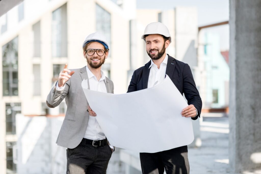 Engenheiro/arquitetura acompanhando as etapas críticas, garantindo segurança e qualidade.